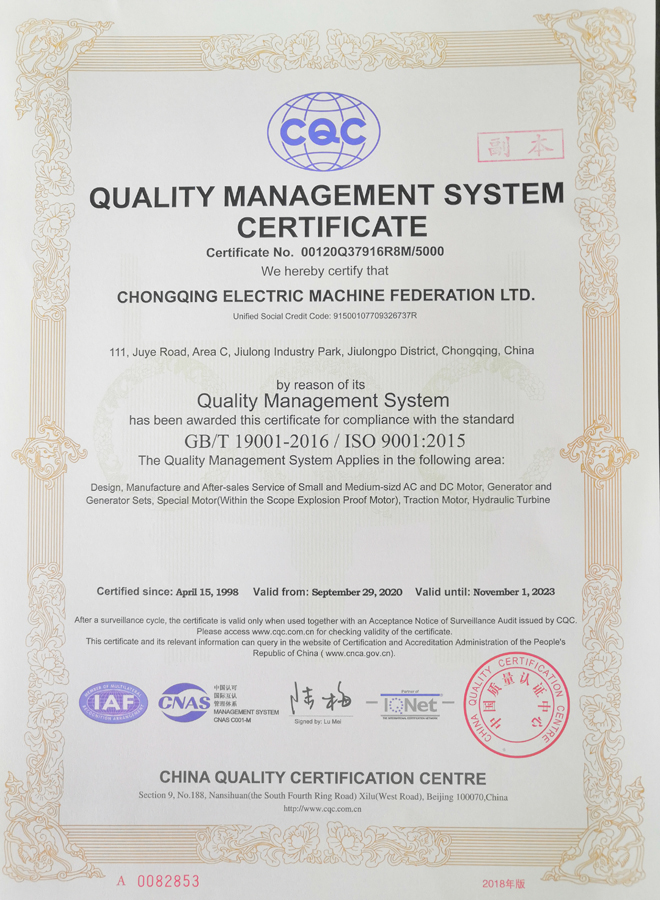 公司傳承了原重慶電機廠先進的電機制造技術(shù)和管理經(jīng)驗,建立了按現(xiàn)代企業(yè)制度管理方式的法人治理機制,是國家重點企業(yè)及研發(fā)、生產(chǎn)和銷售各型交流異步電動機、交流同步電動機、直流電動機、汽車電機、軌道牽引電機、水輪發(fā)電機及發(fā)電機組和其它特殊電機的專業(yè)制造廠家。