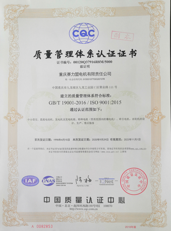 重慶賽力盟電機有限責任公司是由具有七十多年歷史的原國家大型二類企業(yè)重慶電機廠與其他非國有出資人按照現(xiàn)代企業(yè)制度于2001年1月18日成立的有限責任公司。